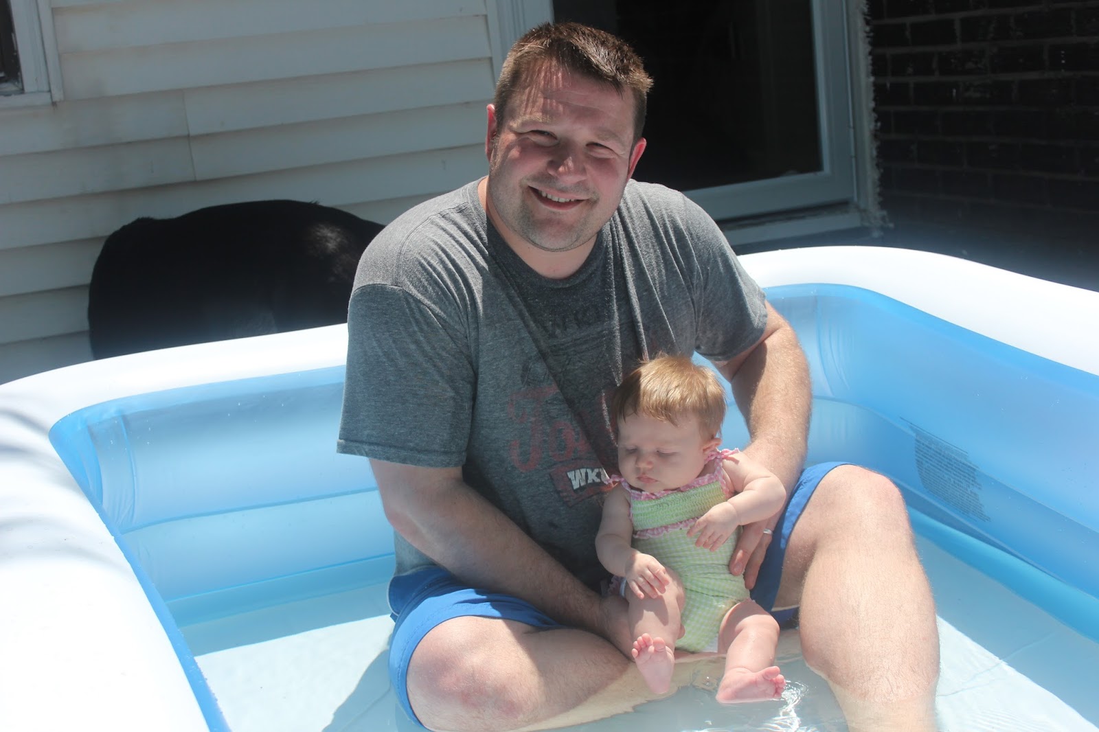With this heat wave we've been having, we thought we'd introduce Bailey to the pool. She's a little too young for the chlorine yet, so Daddy got us our very own pool we can set up on the deck. We of course had all our gear ready, we just needed to add water!