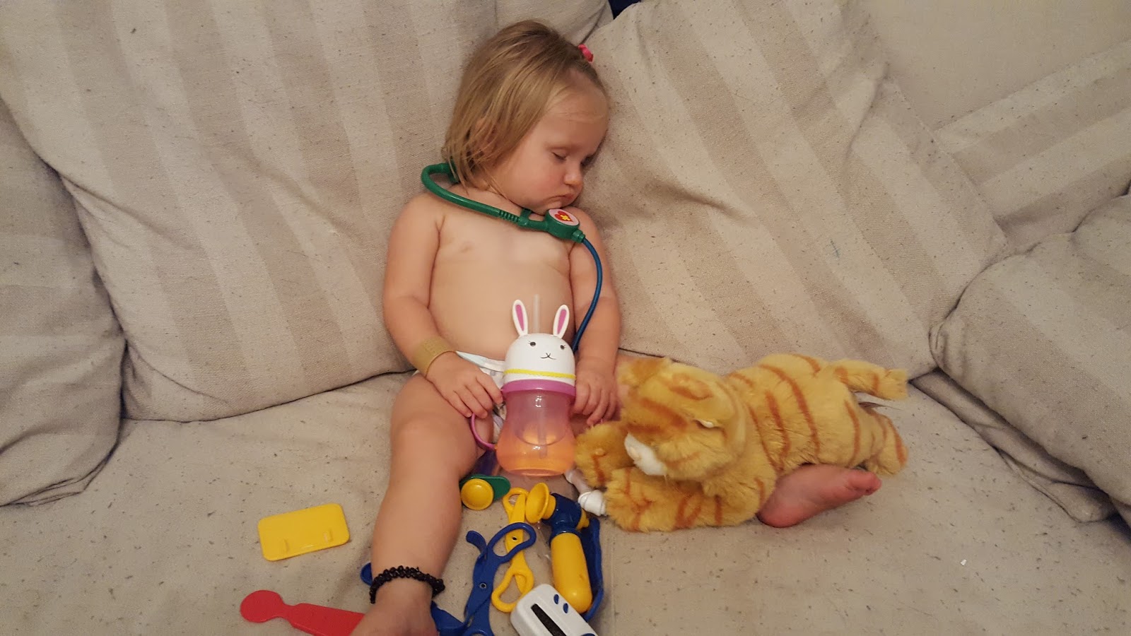 When we're not out at the park or on a fun adventure, Bailey loves to keep herself entertained with her collection of treasures and toys. She loves to play with her princesses, both the big ones and the little ones. She loves when you sing the princess songs and dance with each princess, so Mom has had to become better versed in the tunes. Bailey is also brushing up on her vet and doctor skills and loves to dress up and get into character, taking care of her toys in need.