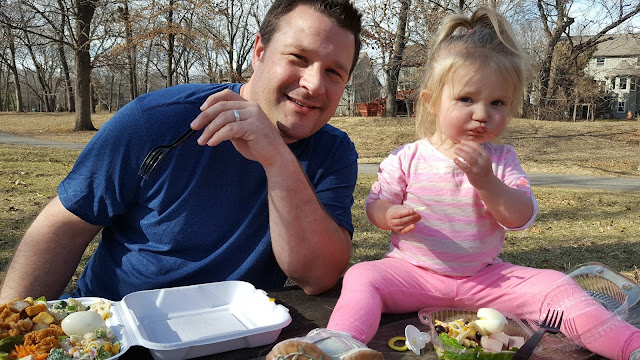 When the temps in February are in the 60's and 70's, you have to live outside as much as you can and we definitely took advantage of the gorgeous weather. We cleaned up the backyard and Bailey loves exploring every inch of it. She also loves walking up to the park and digging in the dirt and sand. She's definitely an outdoorsy girl and Tequila has enjoyed the extra outside time. Bailey loves to watch the big kids at the park and has started copying the way they play and climb. She is such a big girl now and loves to try new things at the playground. The dog park is still one of our favorite places to play and now that they have expanded Stoll park, there is even more for us to explore.